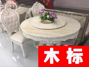 歐式歐式淺色餐廳實木大理石桌面圓餐桌椅/餐椅